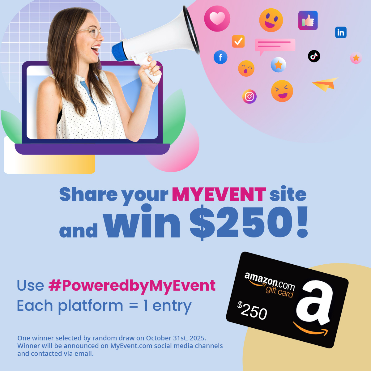 - Winner will be announced on MyEvent.com social media channels and contacted via email.