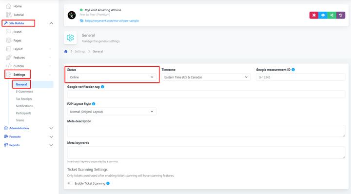 Simply navigate to Site Builder > Settings > General, locate the Status field, and set your website to hidden or public whenever needed.