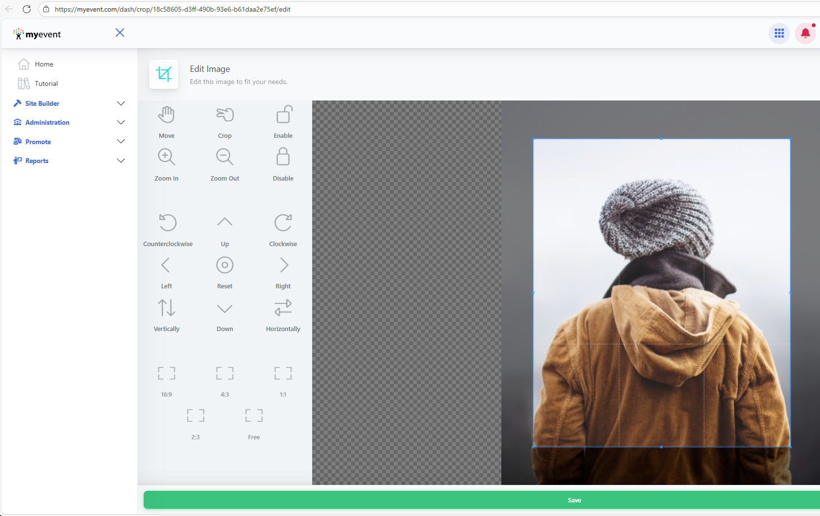 Here you can click and drag over to the photo if you wish to crop it, or click the clockwise\counterclockwise buttons to rotate it if it was uploaded upside down for example. To save any changes click the Save button below the image.
