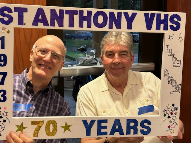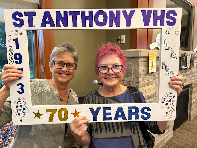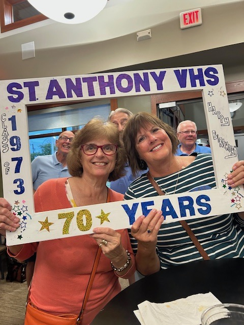 Forty of our classmates were able to attend the event with Andrea Flynn coming the farthest from Florida. Other long distance guests included Dawn Elias and Mary O'Shea from Wisconsin, and Raelyne Johnson from Tennessee. Dave Zander welcomed and entertained the group and we toasted to our 70th. Then we pushed the tables away and turned up the radio and had a sock hop like has never been seen before... Not really, but we mingled, took photos and schmoozed. A good time was had by all and we're looking forward to our next happy hour. We hope to see you there.